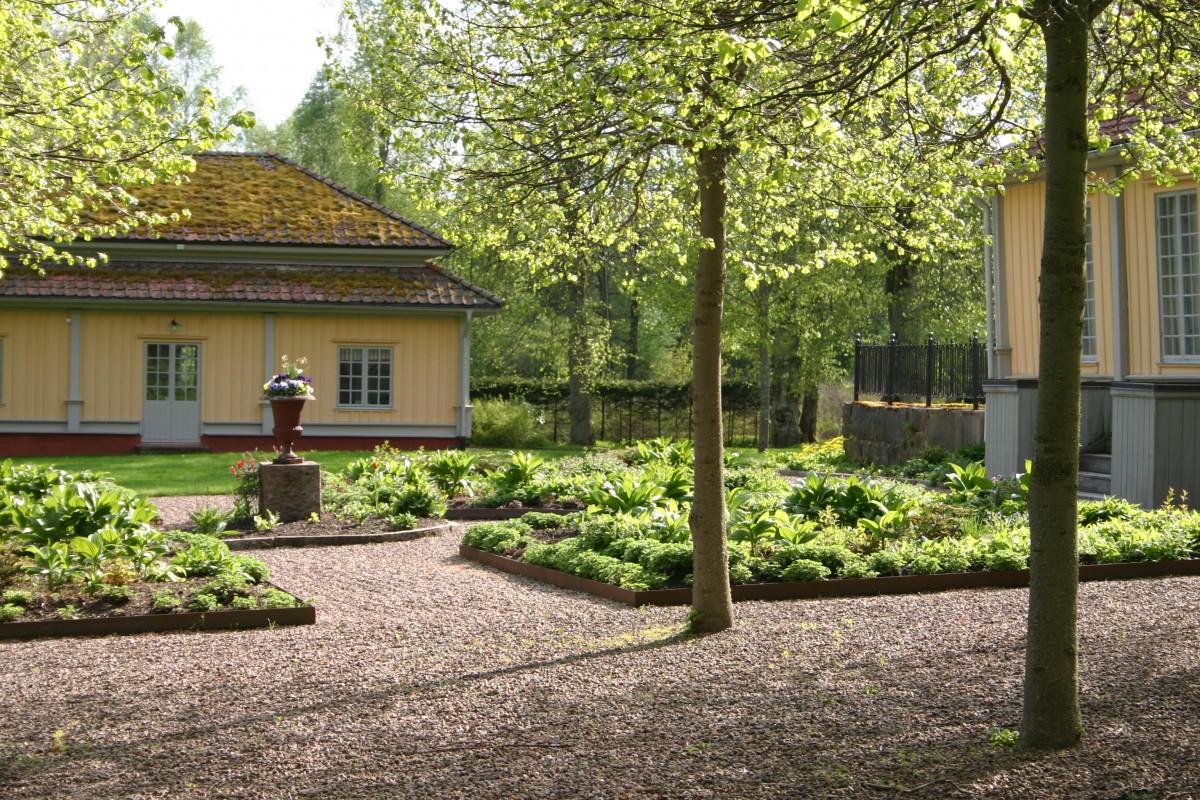 Barockträdgården, på baksidan av huvudbyggnaden, återskapades med inspiration av Einar von Strokirch’s skisser från 1920-talet med sina sex kvarter varav fyra innehållande prunkande perennrabatter. Och på sidan den återplanterade lindallén.